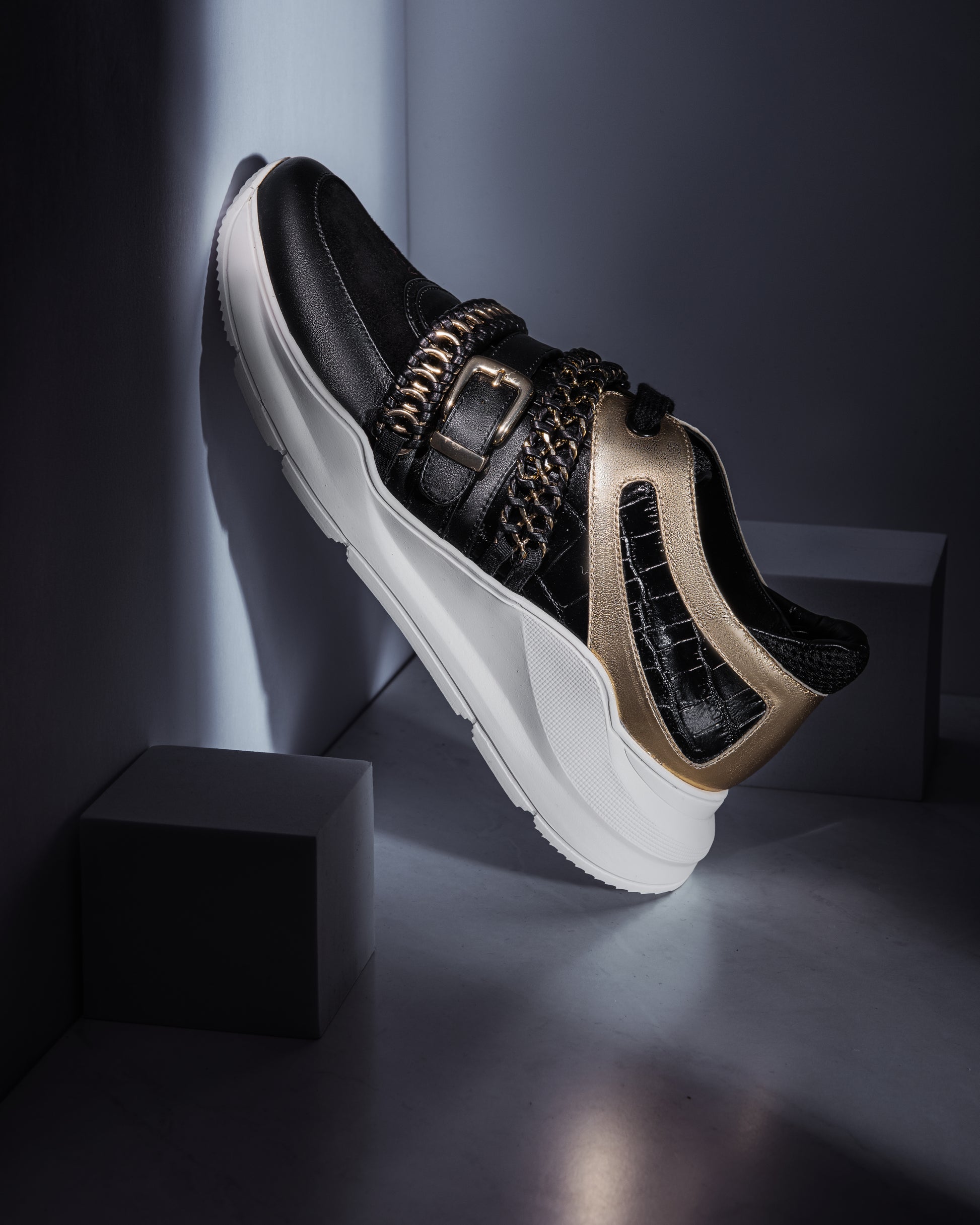 Yes we can! Together We Can achieve anything, and wearing the Together We Can sneaker we can too. This sneaker is for all of you to remember that together we are stronger and that our unique personas and differences can create magic, just like all the different materials in this sneaker are what makes it special. The two leather weaved chains and buckle give it a distinct touch while bringing all the details of the collection together in perfect harmony.